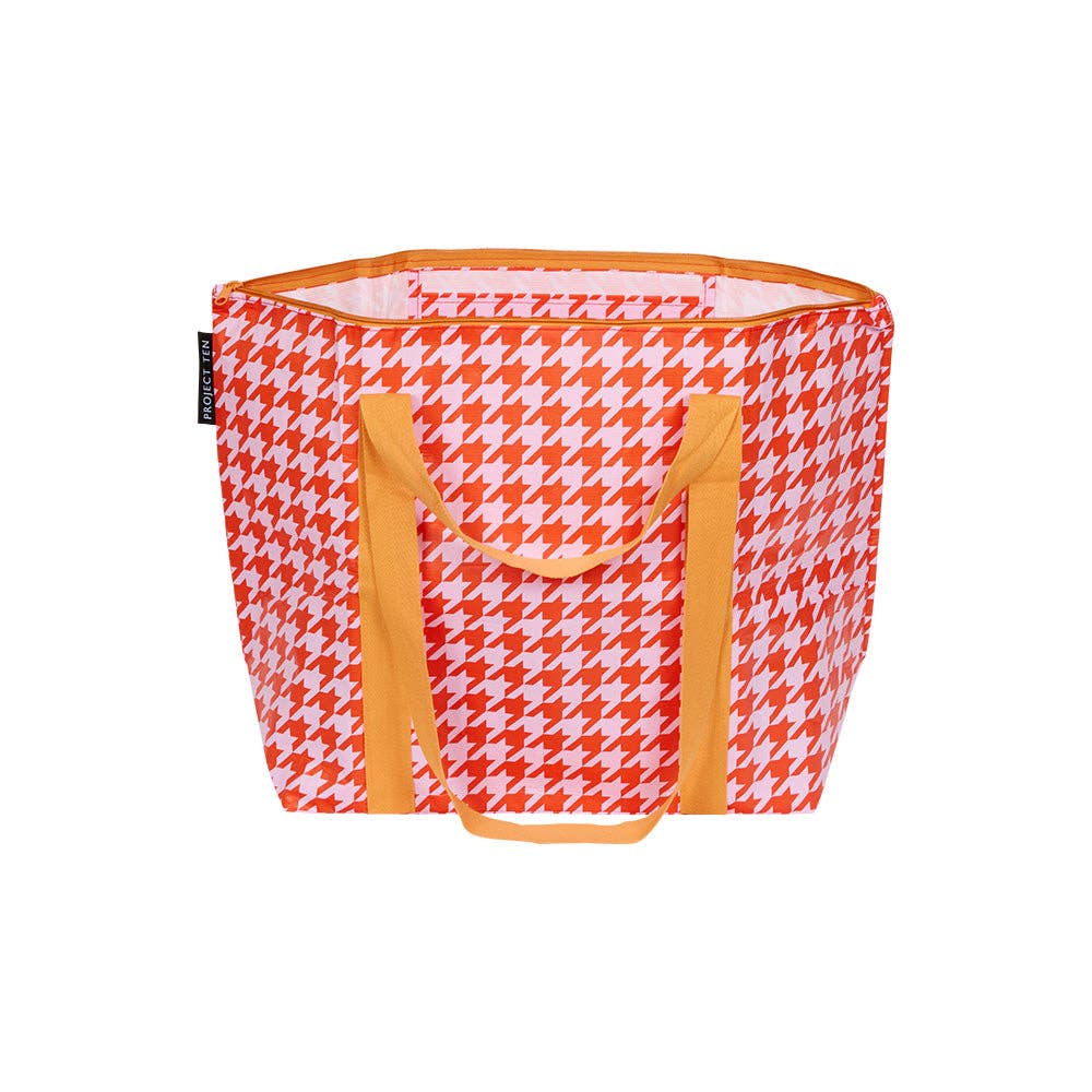 Houndstooth Zip Medium Tote