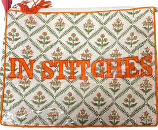 Orange Floral Large Pouch "In Stitches"